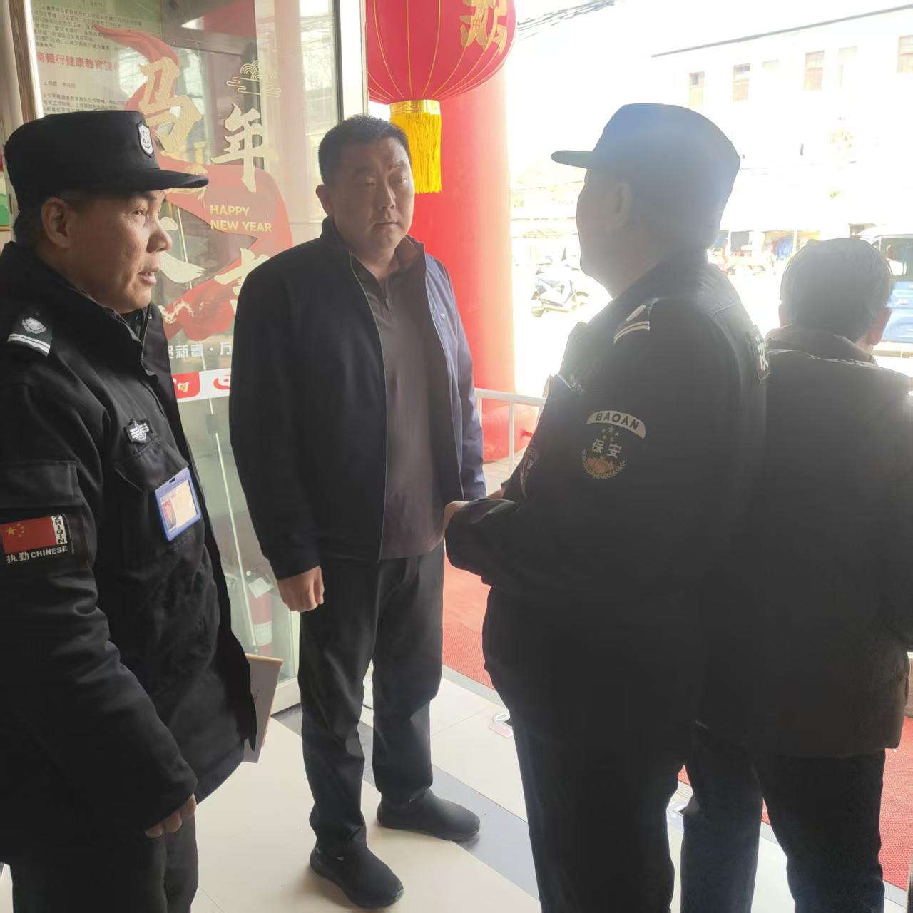 在检查过程中,经理对一线安保队员的辛勤付出表示肯定与慰问,同时强调:乡镇银行网点是金融服务的基层前沿,安全责任重于泰山,全体安保人员要时刻绷紧安全之弦,严格遵守公司规章制度与银行安保要求,做到文明执勤、规范服务,不断提升专业素养和应急处置水平。