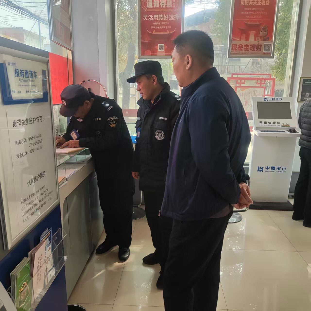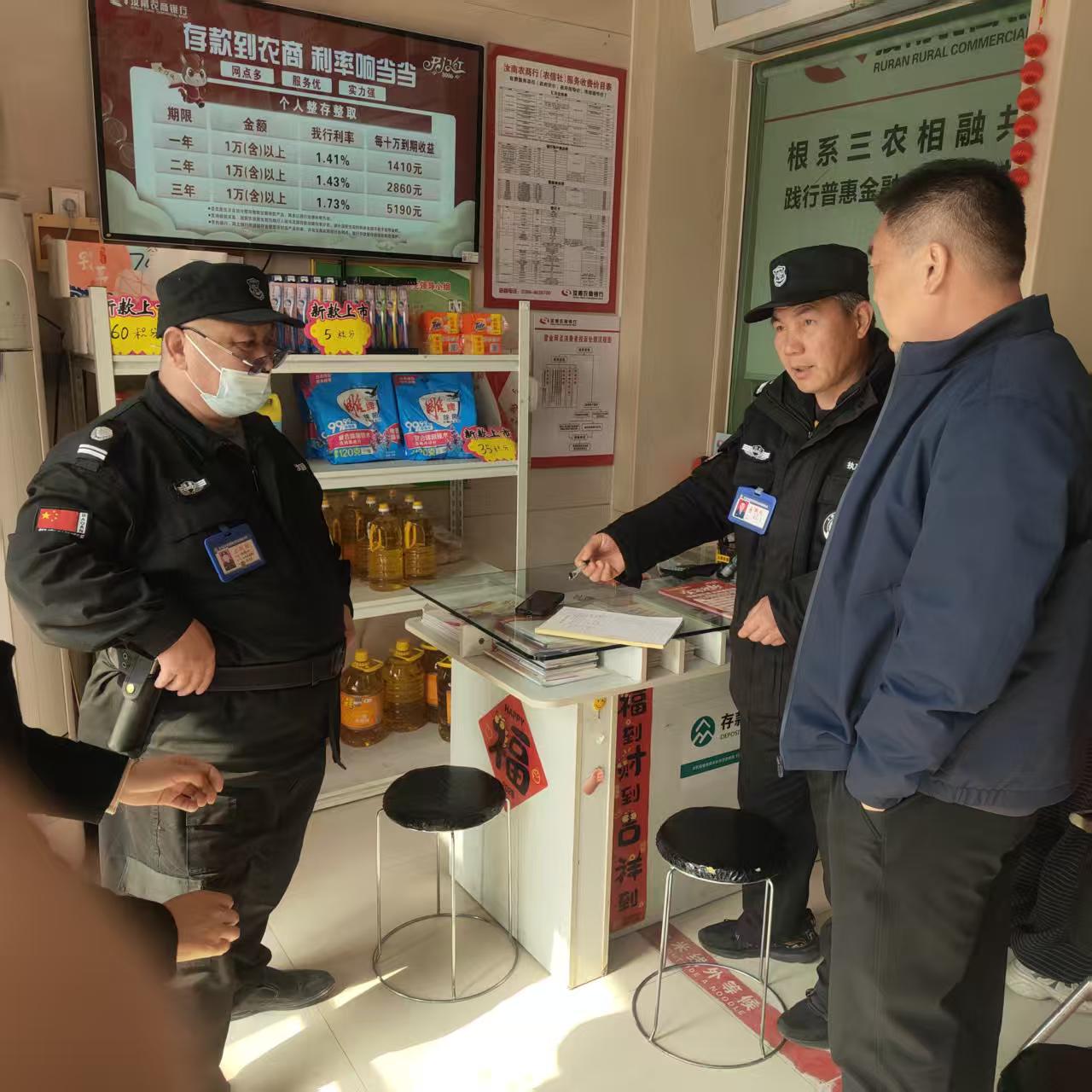 为进一步强化乡镇银行网点安全防范工作,压实安保岗位责任,规范执勤服务标准,切实保障金融网点运营安全与客户财产安全,2026年3月10日,汝南公司经理王潇带队深入辖区各乡镇银行网点,开展专项安全检查与工作督导。
